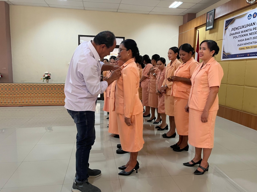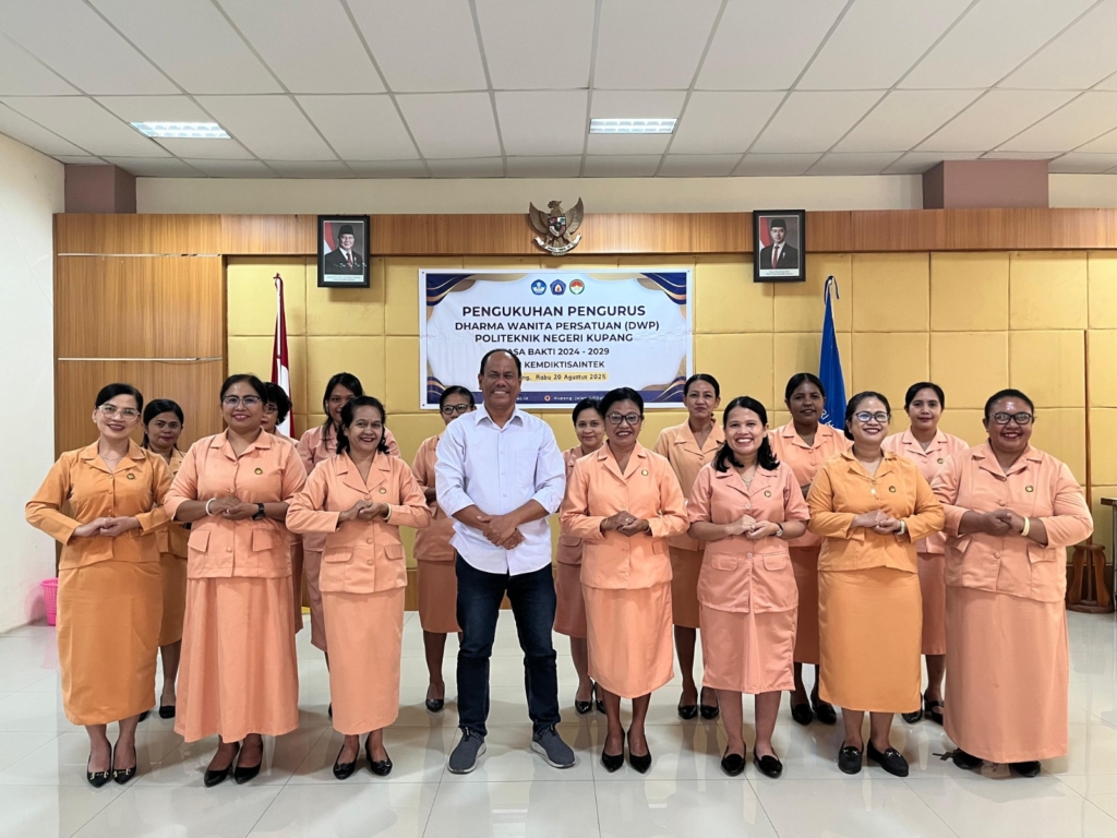 Pengukuhan Pengurus Dharma Wanita Persatuan (DWP) Politeknik Negeri Kupang masa bakti 2024—2029 yang dilaksanakan serentak secara nasional oleh Kemdiktisaintek melalui Zoom Meeting, menjadi momentum penting bagi DWP PNK untuk mempertegas legalitas kepengurusan sekaligus memperkuat peran dan sinergi organisasi perempuan di lingkungan pendidikan tinggi. Melalui penyematan logo DWP oleh Direktur Politeknik Negeri Kupang serta pelaksanaan seminar pembinaan, kegiatan ini diharapkan mampu meningkatkan kapasitas dan pemberdayaan perempuan, serta menjadikan DWP sebagai mitra strategis dalam mendukung kemajuan pendidikan tinggi di Indonesia. (Humas PNK)